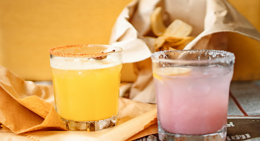 Blanco tequila, Organic Brut, house margarita mix, prickly pear syrup