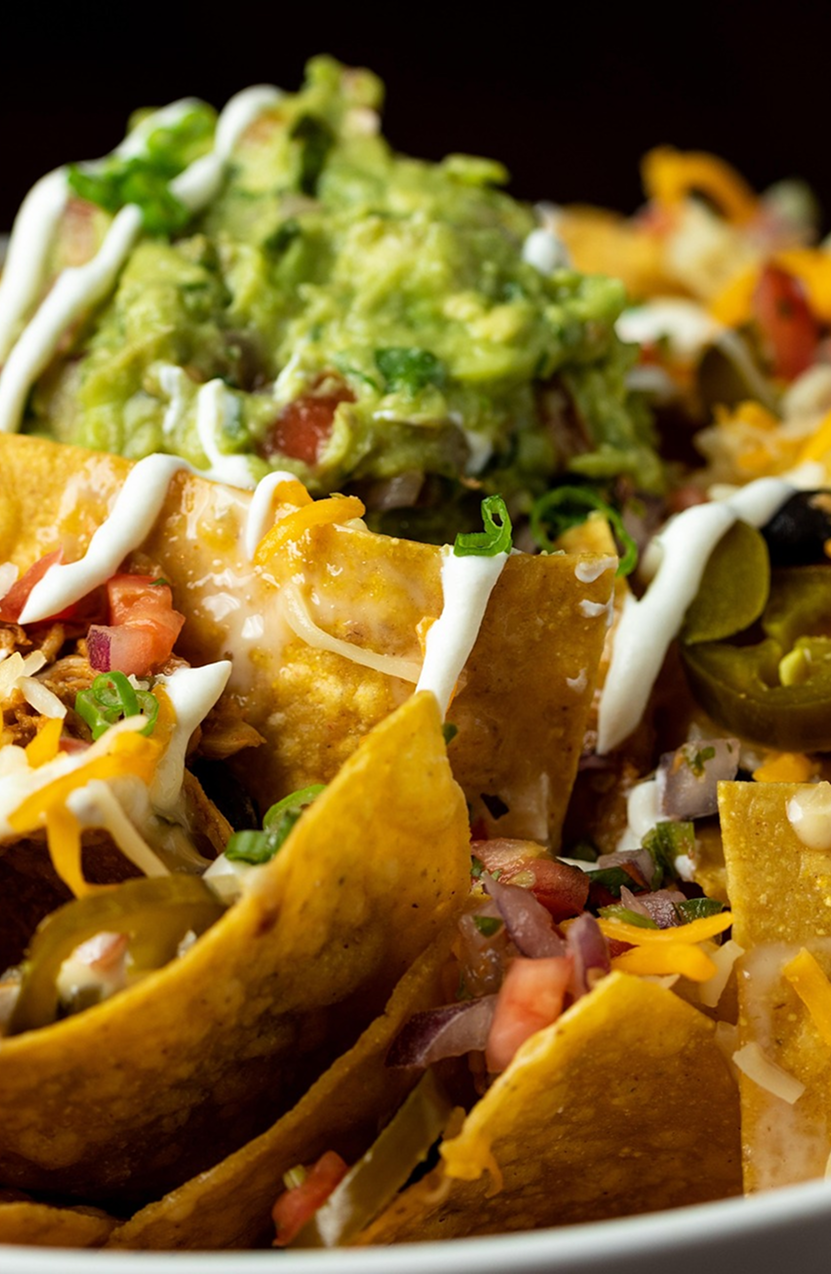 House made corn tortilla chips tossed in tomatillo sauce and topped with two eggs, red onions, avocado slices, queso fresco and crema (dine in only).